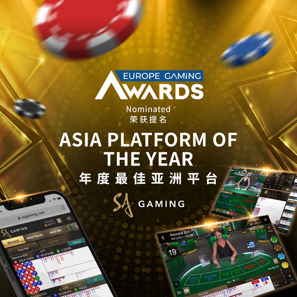 A SA Gaming indicada como “Plataforma do Ano na Ásia” na Premiação da Gaming Europa 2021